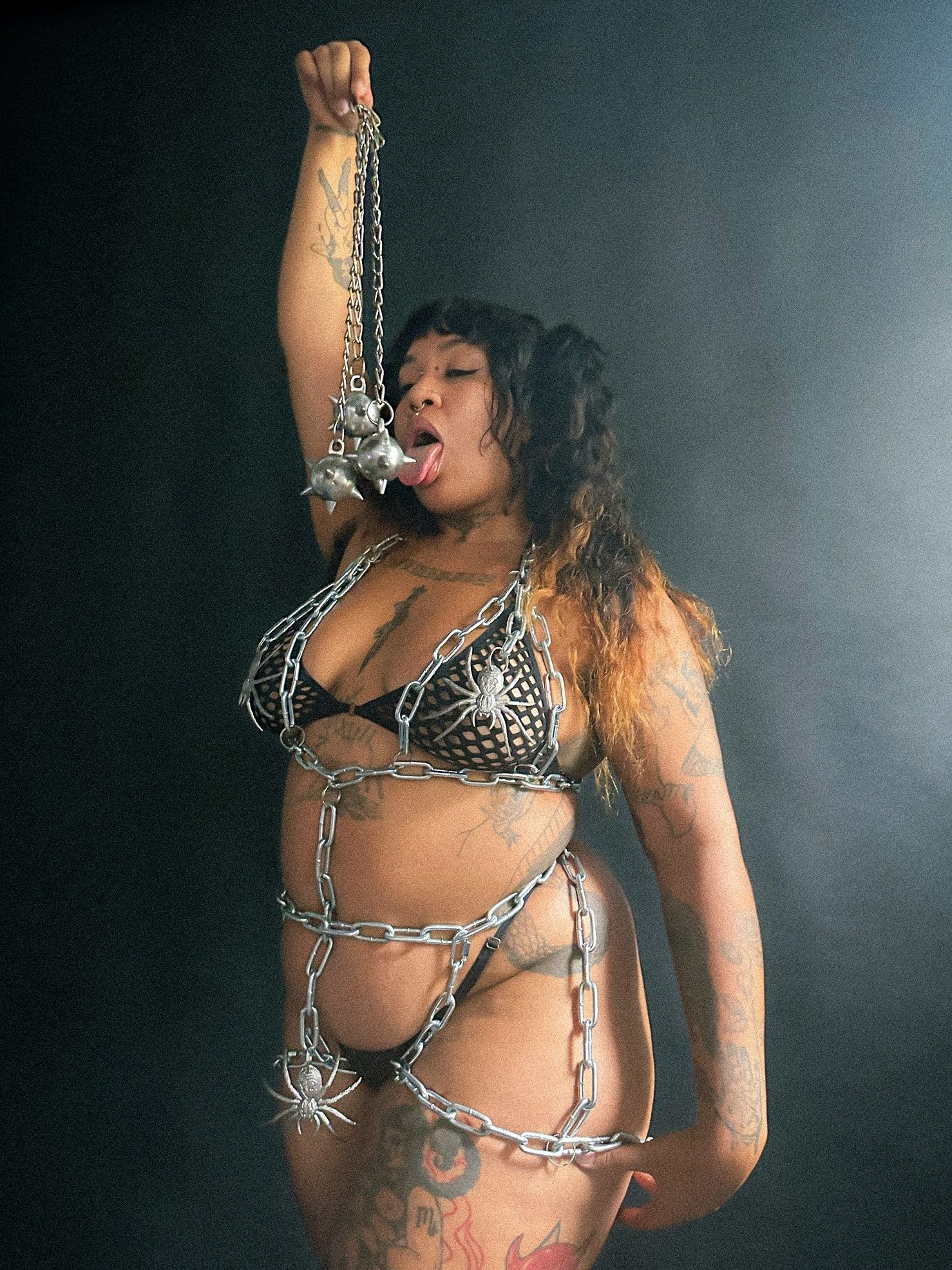 I like to play music during my sessions for sure! Some clients prefer to have the TV on or silence, but I definitely would rather someone let me take control of the music and set the mood. I love curating playlists for my time with my lovers, but I I like to keep those private, maybe I’ll start sharing them soon. My top 4 artists that I enjoy playing during sessions are Shygirl, Deftones, Hiatus Kaiyote and Khruangbin. They’re all very different moods, I like a lot of different music, but they’re all sexy in their own ways and make me horny lol.