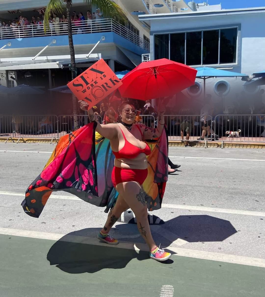 Number one I think allies should be uplifting and sharing our work. Our voices should always be prioritized first and foremost. Secondly, speaking out against whorephobia when you hear it is crucial. Don’t let the dead hooker joke slide, language absolutely fuels the hatred towards us. Thirdly, I would say actively including us in everything, your events, festivals, conferences etc. If sex workers aren’t in the room, ask yourself why and change that.