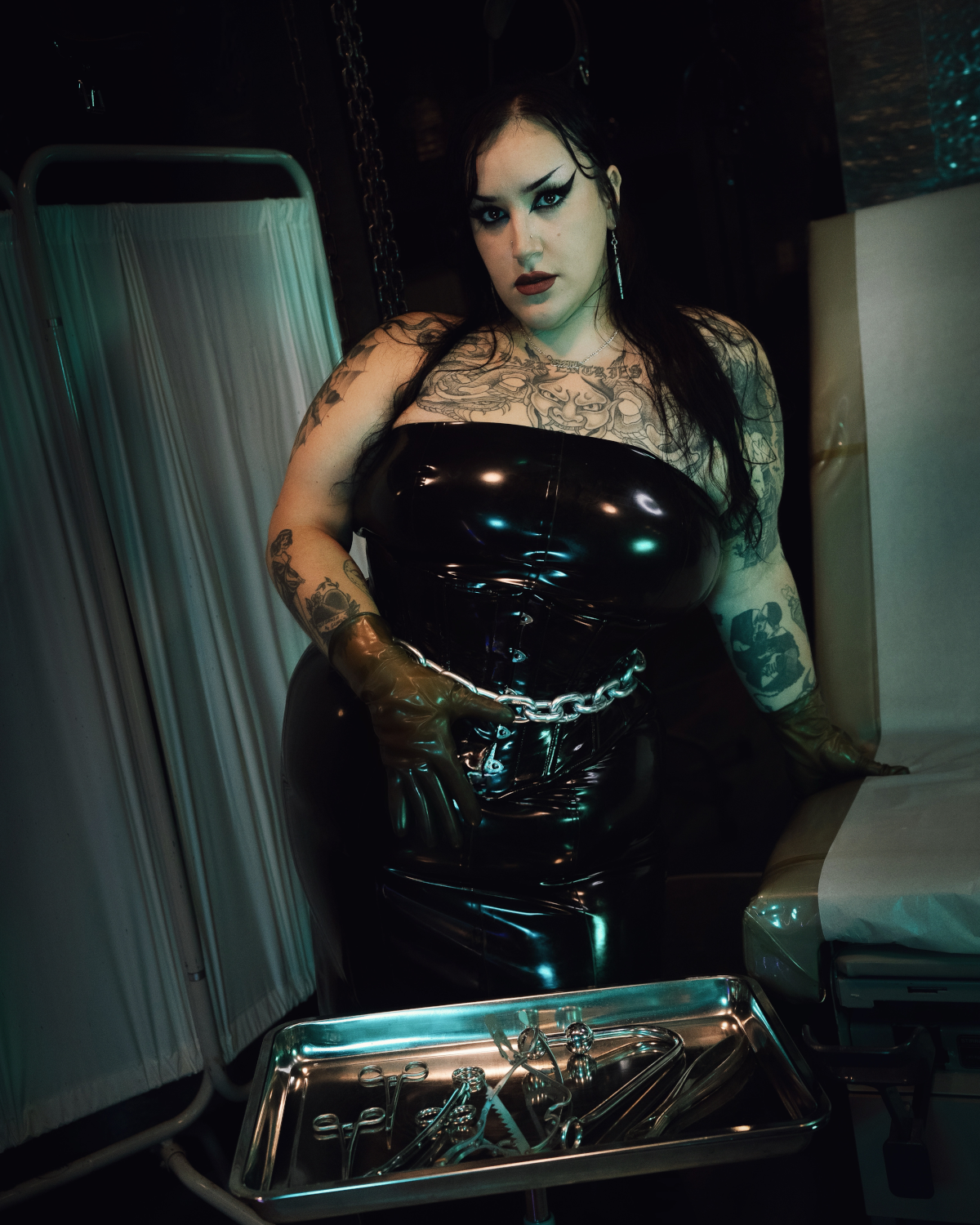 I was involved in the lifestyle before I was a Pro—it was something that was always intriguing to me. I grew up in San Francisco, peering in leather shop windows and sneaking into Folsom Street Fairs. I was always drawn to fetish imagery and obsessed with leather from seeing Dykes on Bikes at San Francisco Pride to punks at the shows I snuck into. My friends and I would break into graveyards after shows to chain each other with our belts made of hardware store chains. I started to teach myself bondage by reading online blogs and books and read more about SM before I ever went Pro.