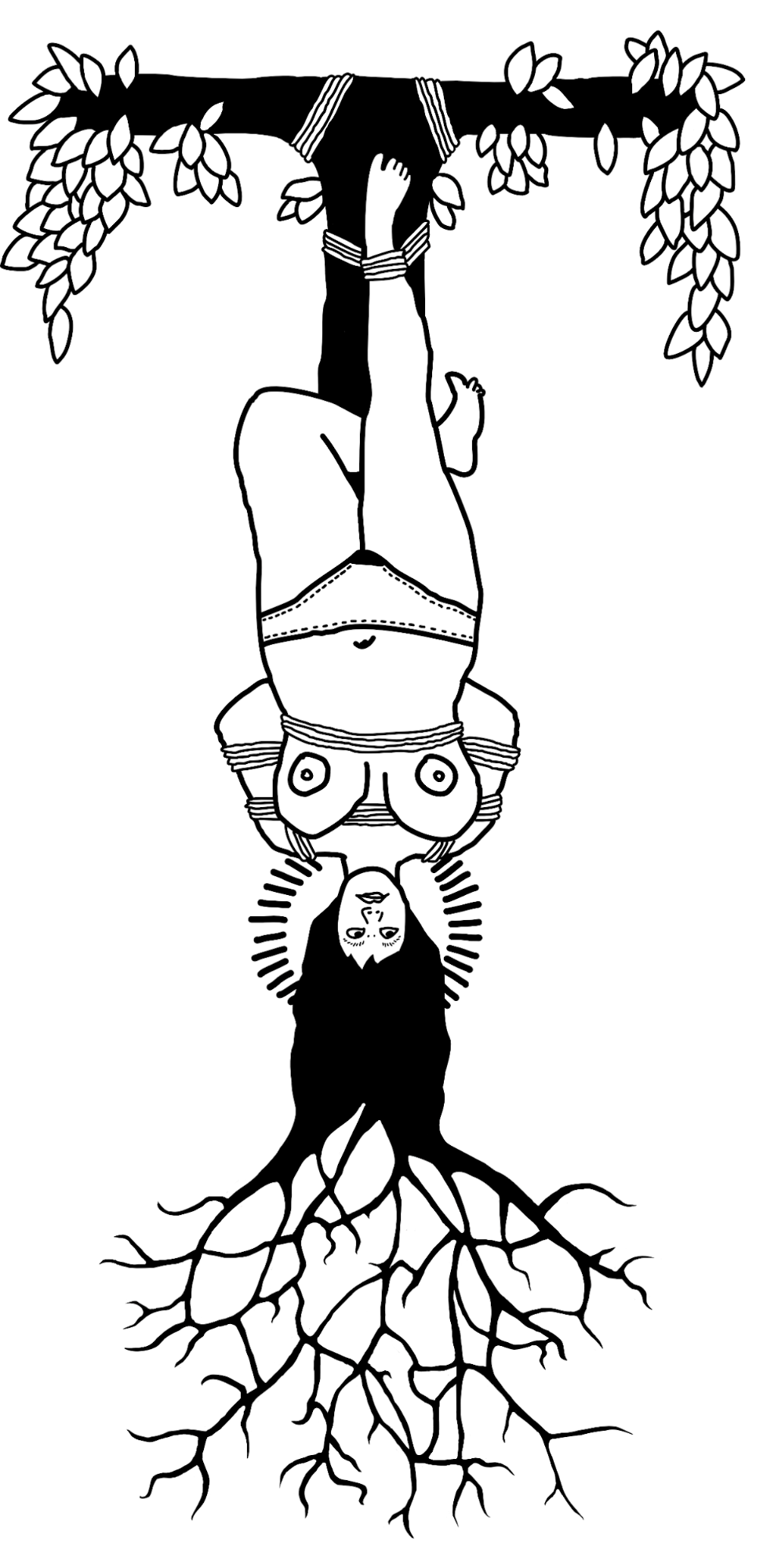 Jae tied the twisted jute like they were holding back the rope from gobbling me up. They gripped me in their strong arms while the ropetails flailed, like they were protecting me, pressing their chest into my back so I could feel them as a wall, a base. Keeping me grounded, even hoisted, swinging from the rig in the ceiling. They were the roots as I swung from their branch.