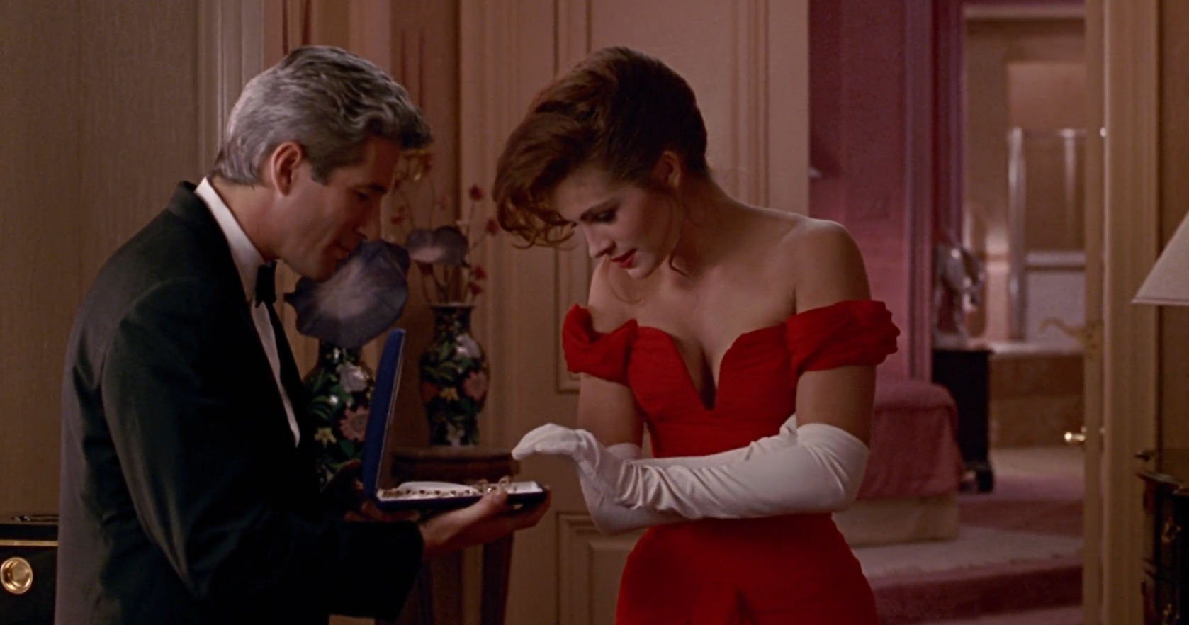 Despite his cold and controlling tendencies, Vivian develops feelings for Edward. She thus pales when he offers to give her credit cards and “put her up in a great condo.” She rejects the explicitness of the offer and waits for him to return to the table when he brings roses as well as riches. When I was a teen, I sympathised fully with Vivian. Love is the answer. But as a mature woman? If I’d spent the week with a rich, classy guy who I knew cycled through women faster than I speed through coffee pods, I’d be getting ready to negotiate my end-of-contract redundancy terms.