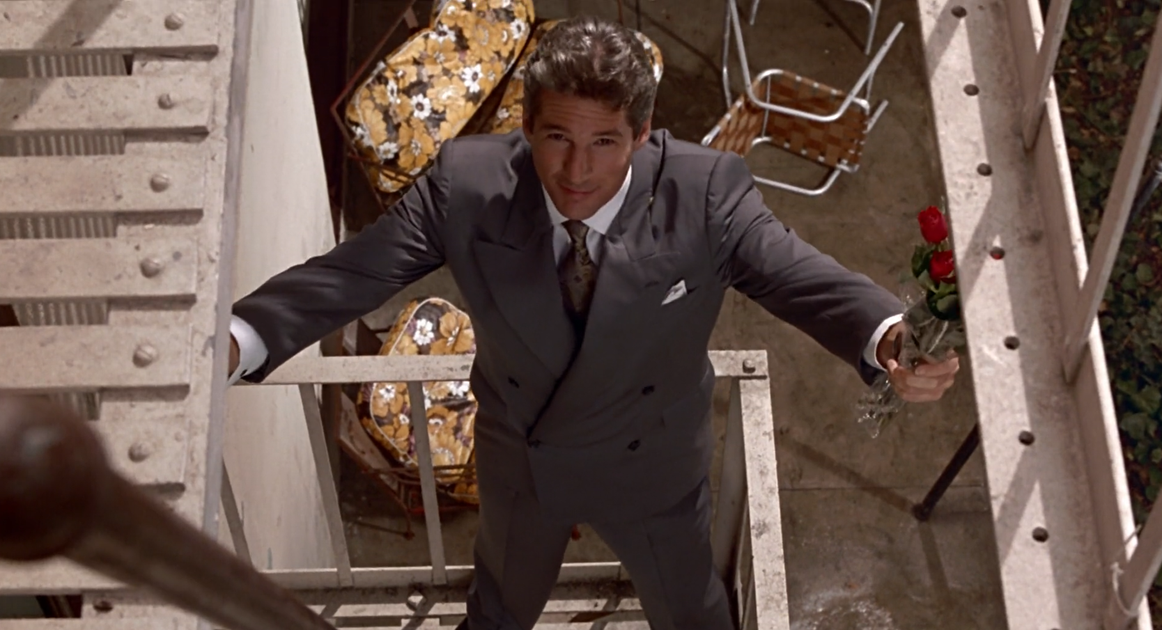 So, Vivian walks out on Edward. While consumerism is enough to improve her access in the world, it isn’t enough to still her unease about her social position. She needs a more clear-cut bit of romanticism to drape loosely over the cracks, like a gossamer cloth over a coffee stained table-top. Not a good client (something real) but a white knight (something dreamed). Which is why in the final scenes, after Edward hands back the borrowed diamonds to the hotel manager, he chases his lover down with a rose.