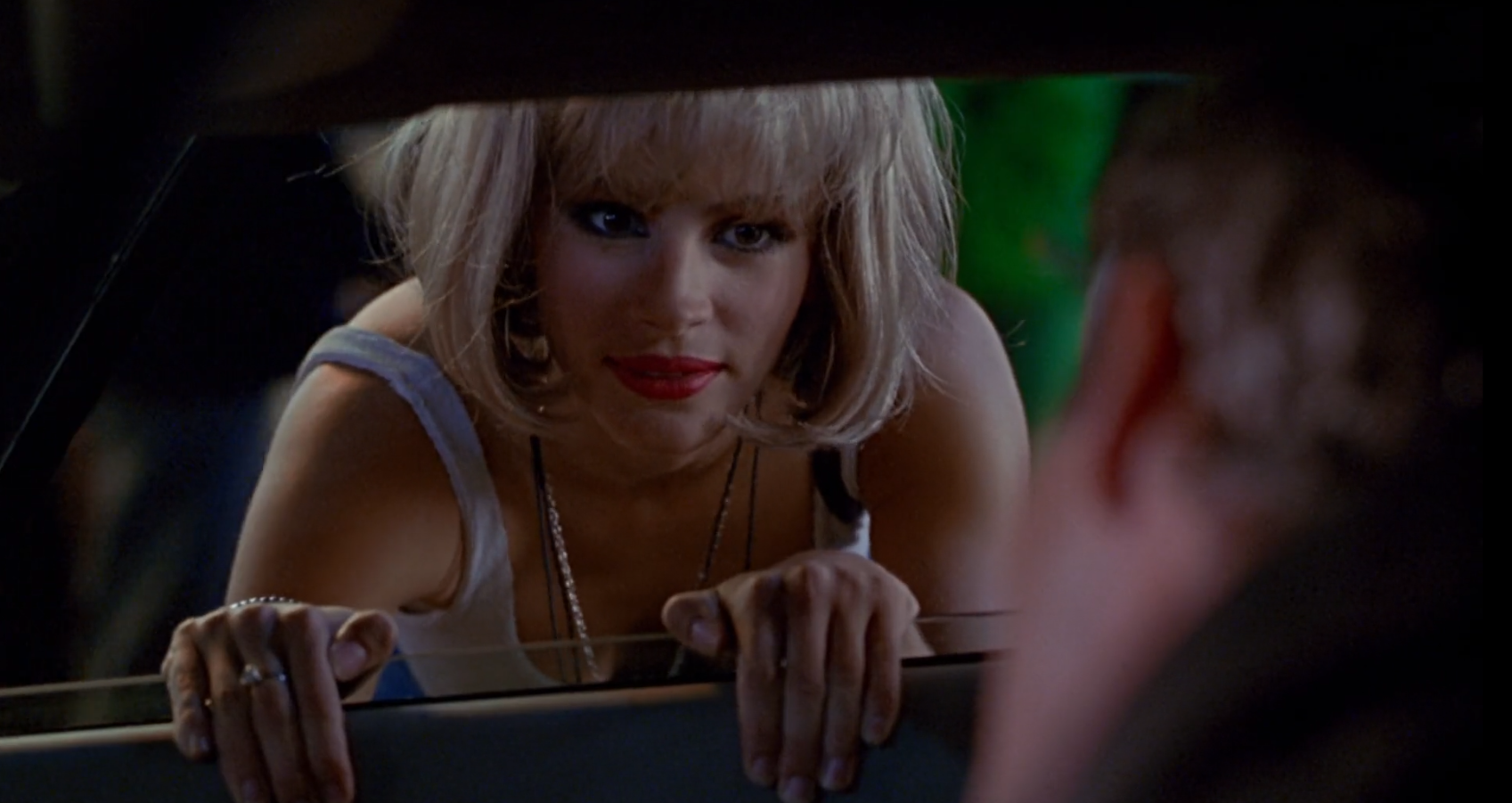 Vivian doesn’t sustain her naivety for long; she adapts into bourgeois ideals–the early 1990s consumer glow-up. With the aid of his credit, the transgressive imagery of street-based sex work is symbolically cut and buffed by luxury fabrics, refined hairstyles, and shimmering necklaces with obnoxiously large price-tags. It’s through this process that the possibility of ‘love’ is reckoned with. The consumer baubles are endowed with romanticism, in much the same manner as any engagement ring advert you ever saw. Vivian becomes a romantic heroine through them, and the reality of their sexual exchange is obscured.