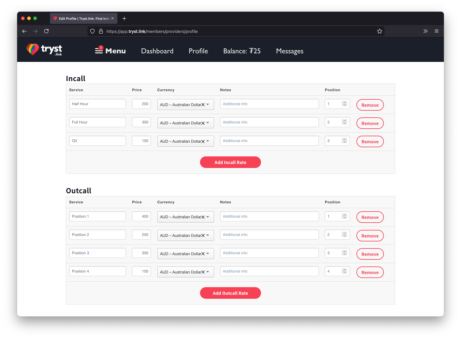 - Added the ability to set the order that rates appear on your profile so you can control exactly what order clients see them in.