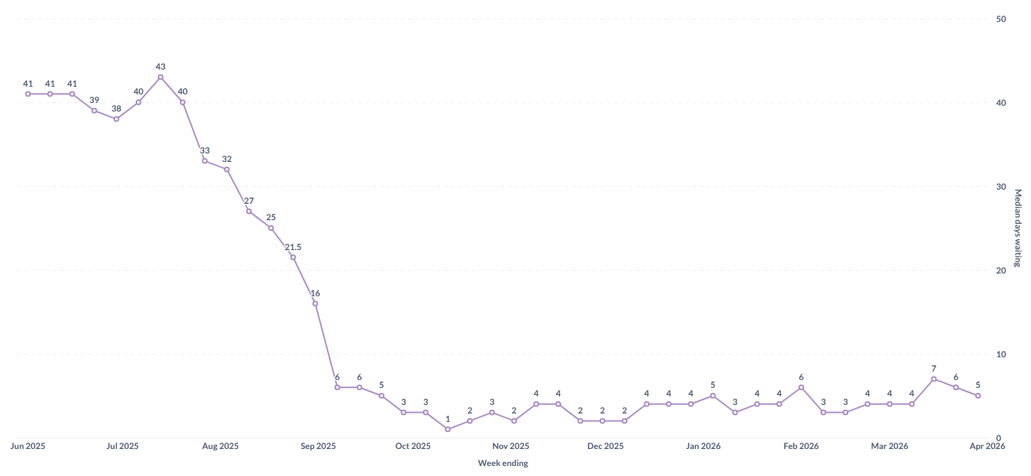 Last year, we successfully reduced wait times for new profiles by a staggering amount. We didn't focus on that one number just for the sake of it. Addressing that backlog meant reorganising a lot about how we hire, train, build teams, design processes and work day-to-day. Those massive, invisible changes have prepared us to meet the challenges 2026 is already presenting for our industry. We all know there will be more to come. We're ready to manage those too.